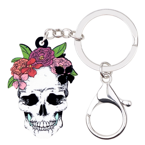 Acrylic Halloween Flower Skull Skeleton Key Chains Ring Keychains ...