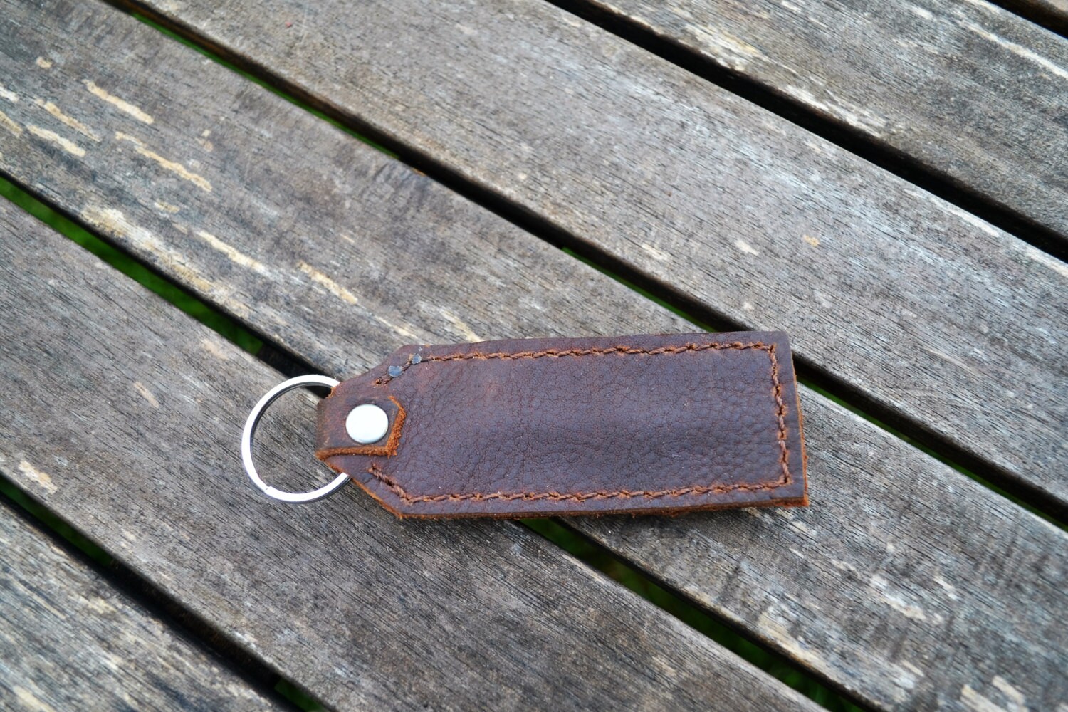 Leather keychain with vintage skeleton key Hand stitched | Etsy