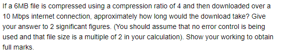 Solved If a 6MB file is compressed using a compression ratio | Chegg.com
