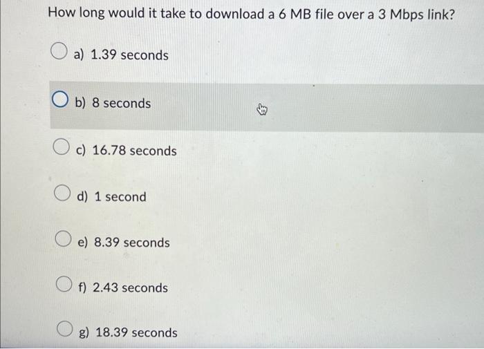 Solved How long would it take to download a 6MB file over a | Chegg.com