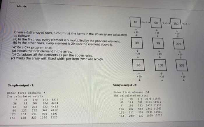Answered: Implement a program that will populate a 6x5 matrix with ...