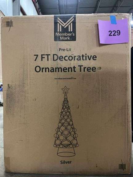 PRE LIT 7FT DECORATIVE ORNAMENT TREE IN BOX - Earl's Auction Company