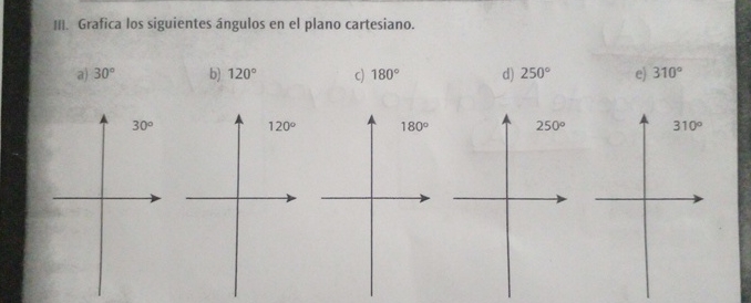 Solved III. Grafica los siguientes ángulos en el plano | Chegg.com