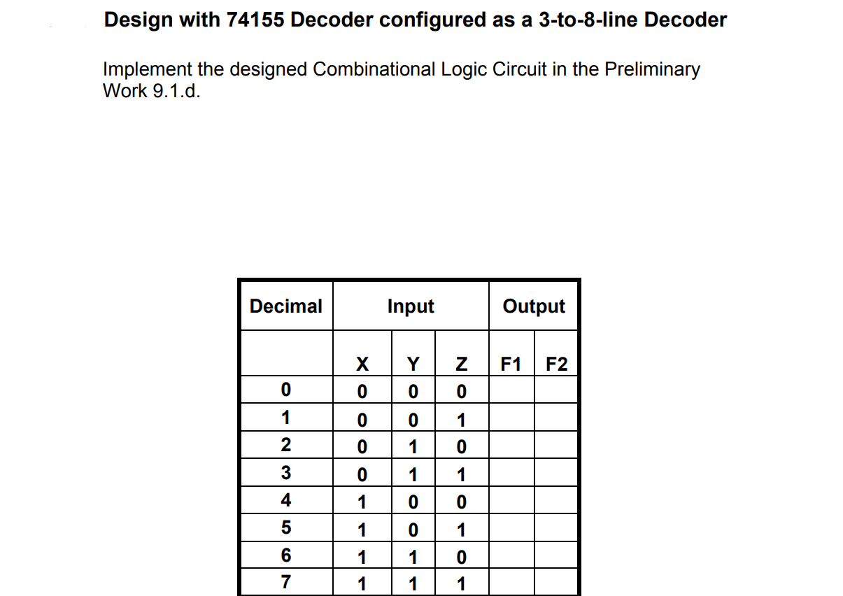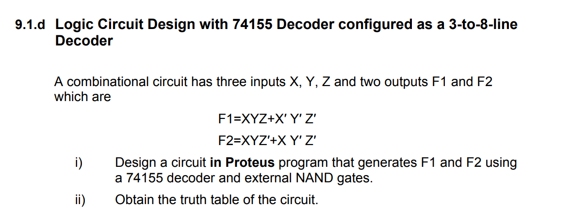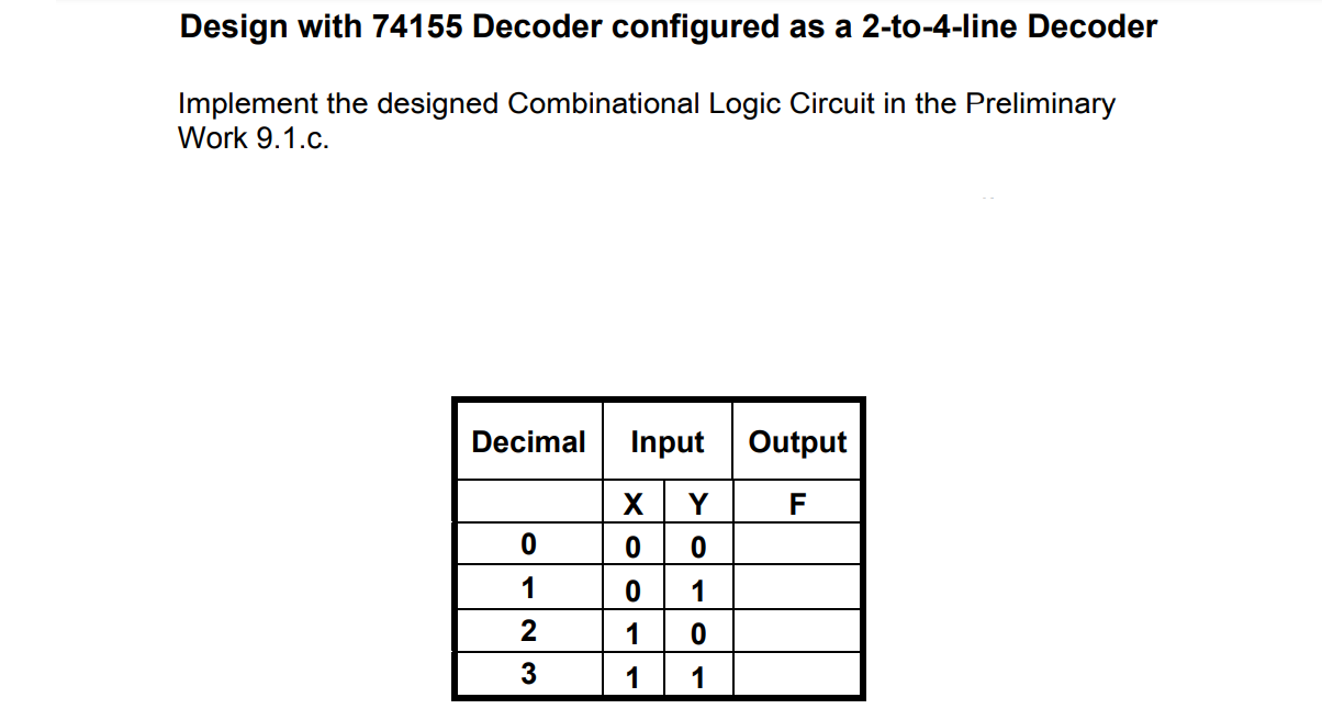 Solved 9.1.c Logic Circuit Design with 74155 Decoder | Chegg.com