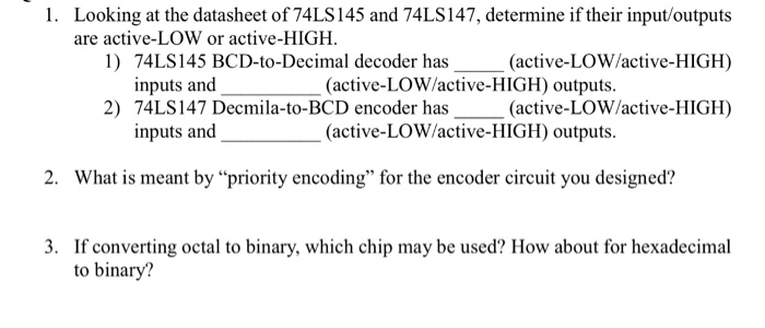 Solved Looking at the datasheet of 74LS145 and 74LS147, | Chegg.com