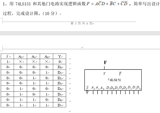 用74LS151实现74LS151的功能表如表2所示,逻辑符号如图4所示。〔15分〕表2 74LS151的功能表 ...