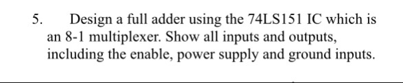 5. Design a full adder using the 74LS151 IC which is | Chegg.com