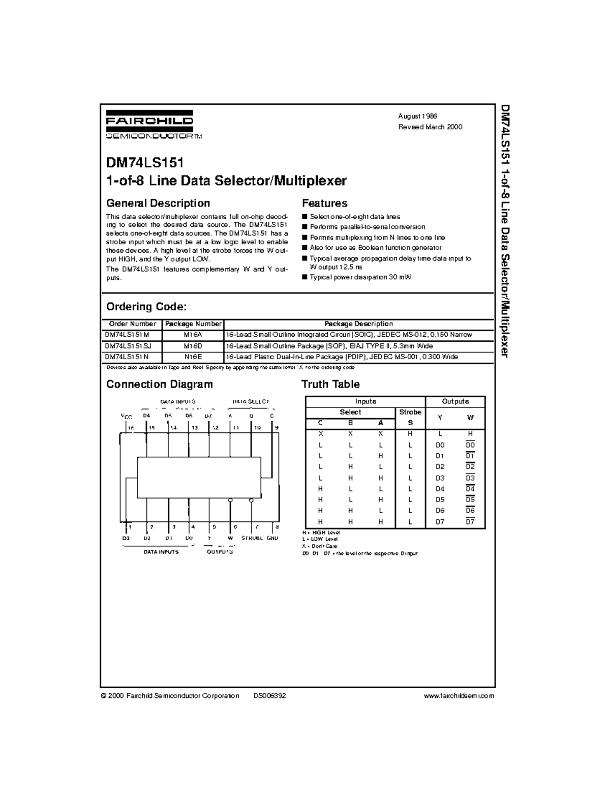 74LS151 datasheet(2/7 Pages) FAIRCHILD | 1-of-8 Line Data Selector ...