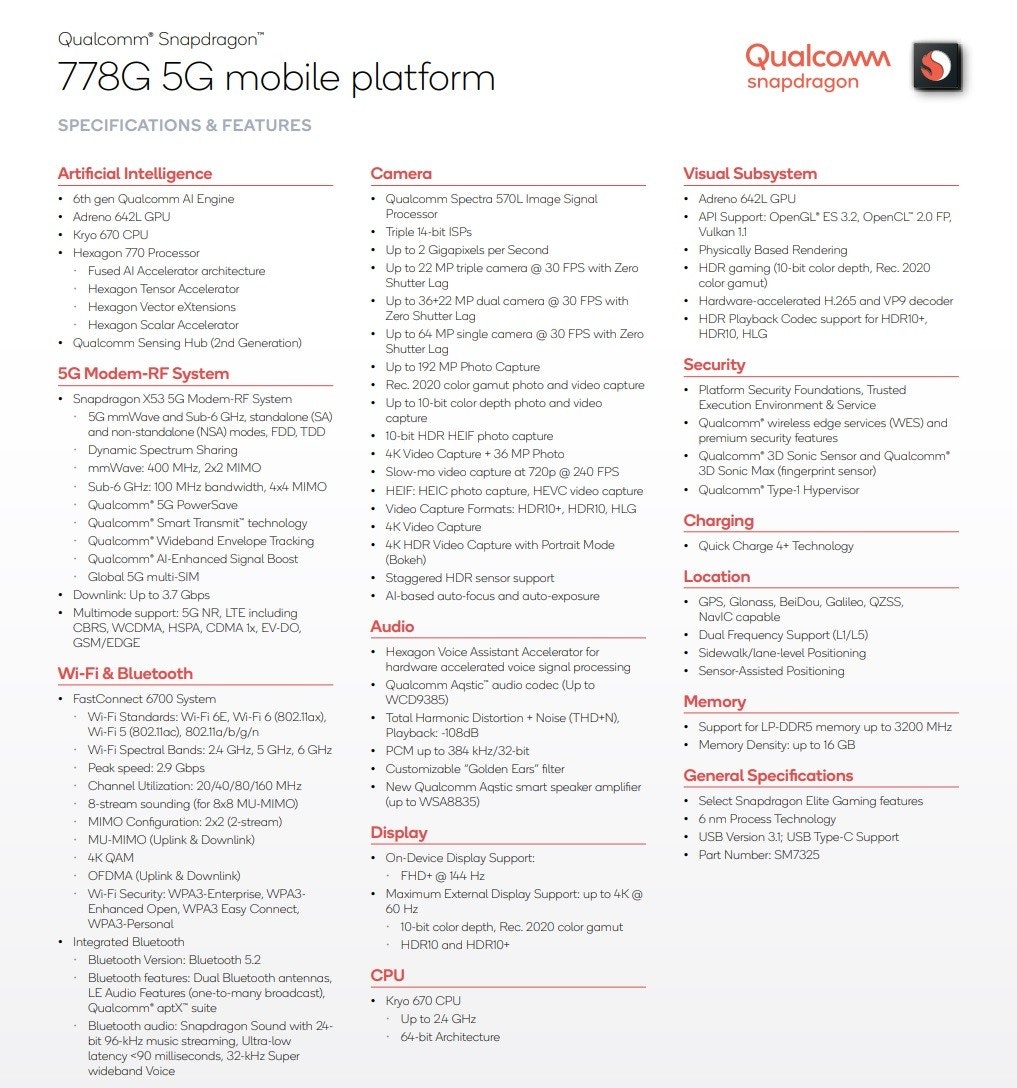 Qualcomm Snapdragon 778G 5G 6nm Mobile Platform announced, to power ...
