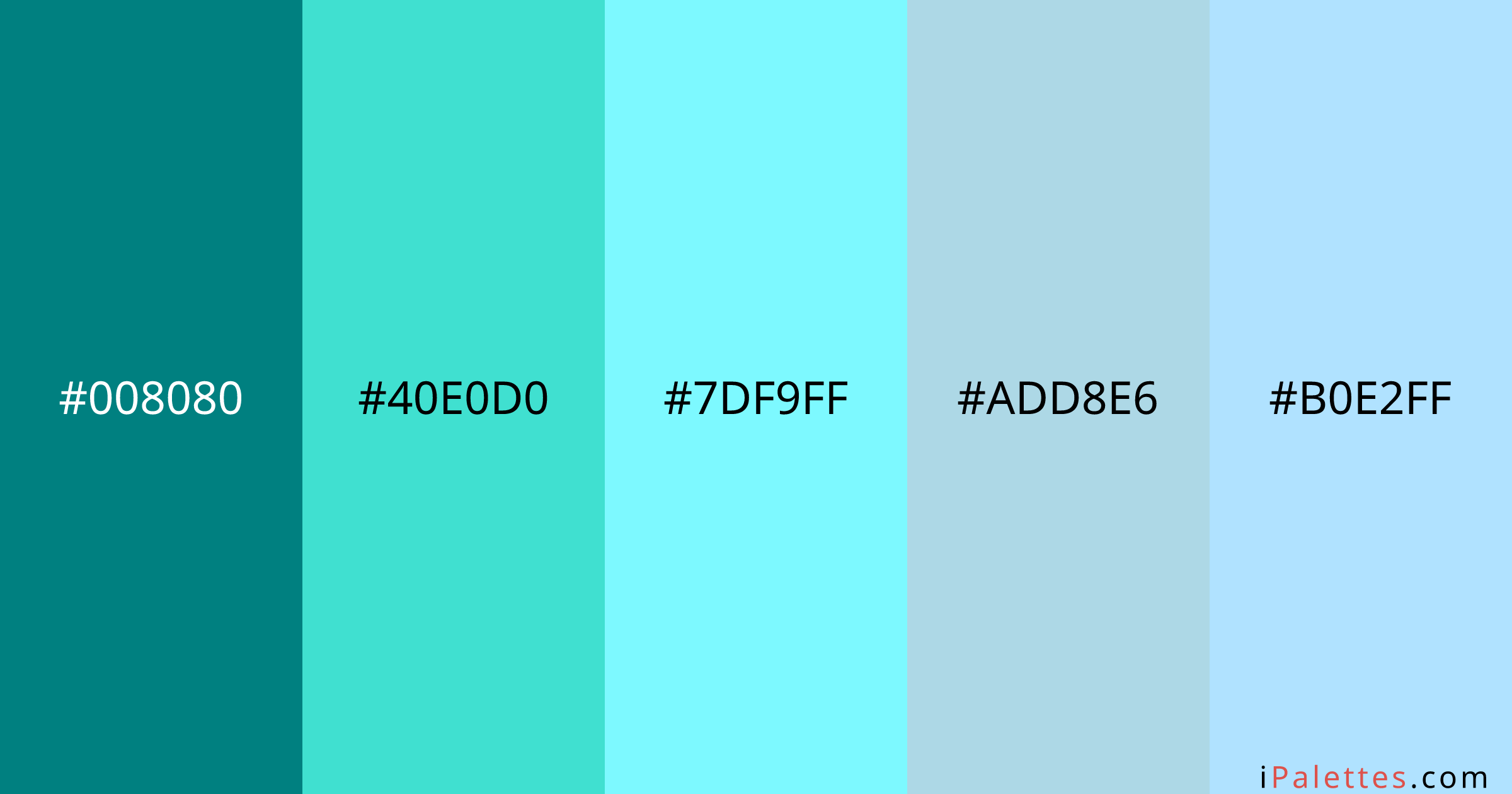 Underwater Filming Color Palette and colors #008080 #40E0D0 #7DF9FF # ...