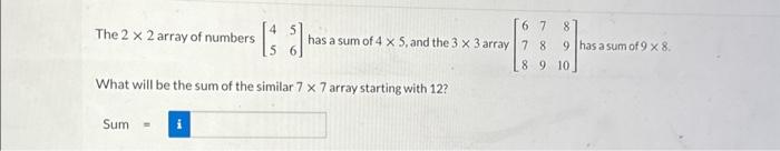 Solved The 2 x 2 array of numbers What will be the sum of | Chegg.com