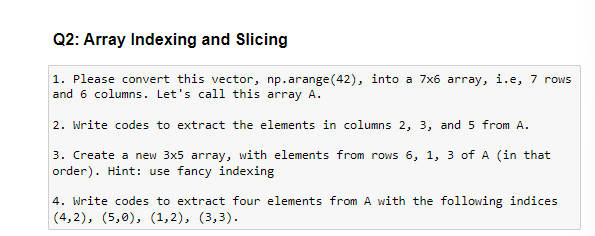 Solved Q2: Array Indexing and Slicing 1. Please convert this | Chegg.com