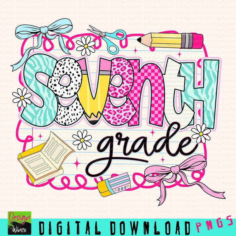 Seventh Grade PNG, Pencil Doodle Bow PNG, Cute Leopard Dalmatian Zebra ...