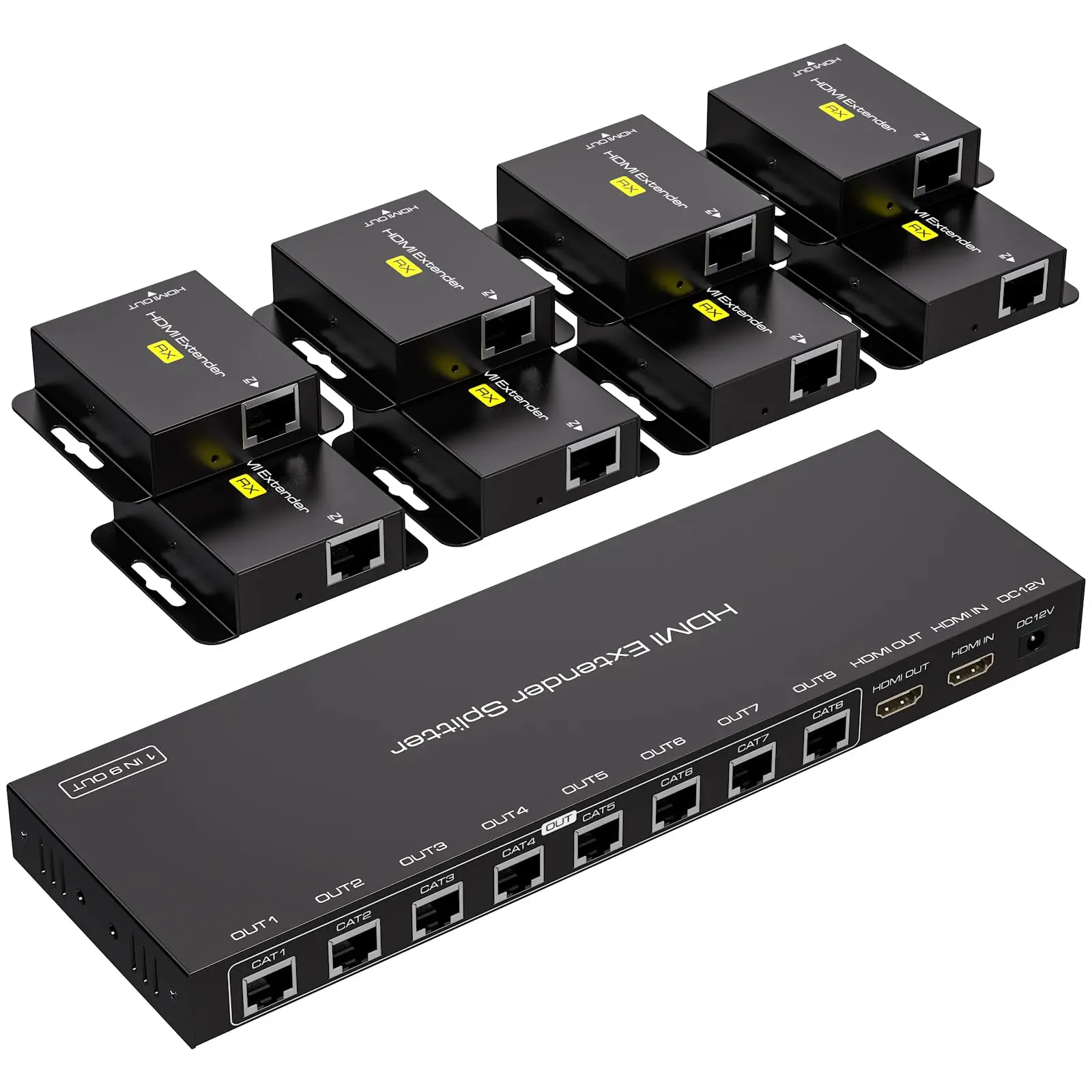 HDMI 8 Port Extender Over Cat 5E/6 with 8 Receivers & IR Extender