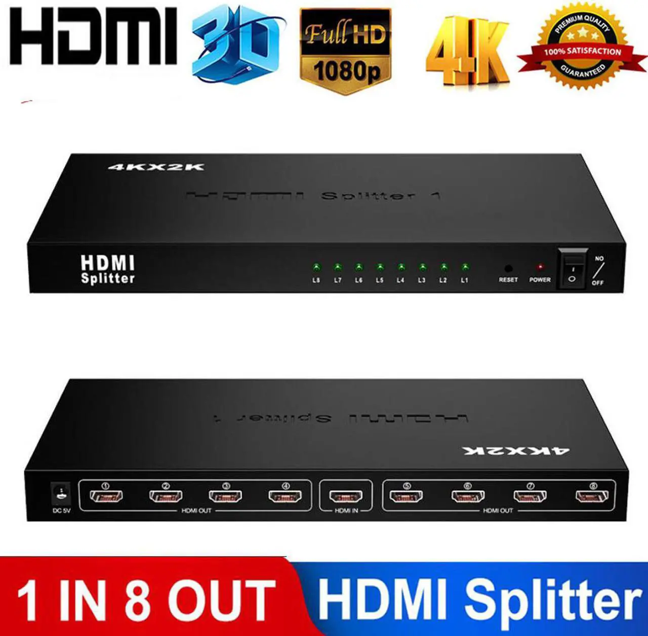 4K HDMI Extender Splitter 1x8 Port , 1 in 8 Out HDMI Splitter Box ...