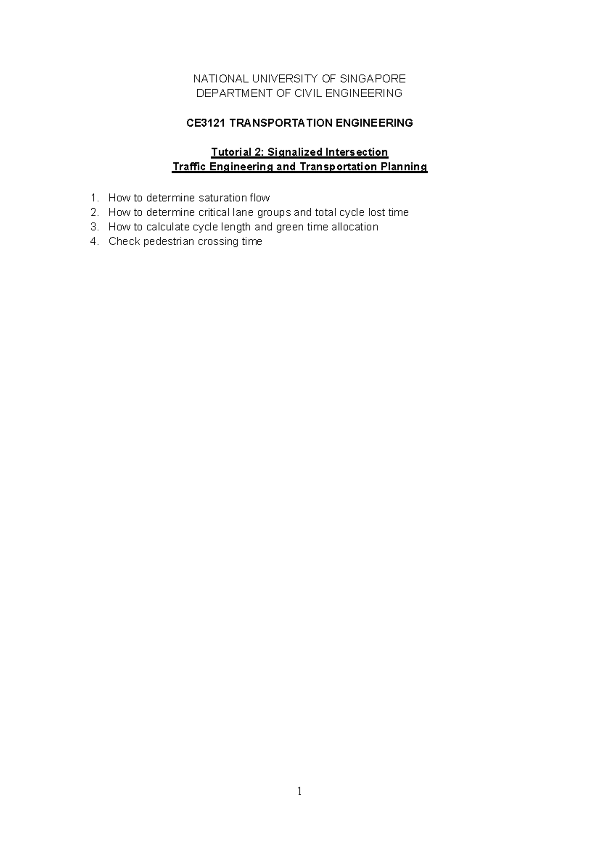 CE3121 Transportation Engineering Tutorial 2: Signalized Intersection ...