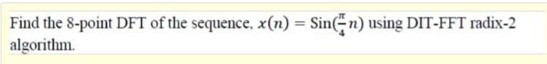 Solved Find the 8-point DFT of the sequence, x(n) = Sinn) | Chegg.com