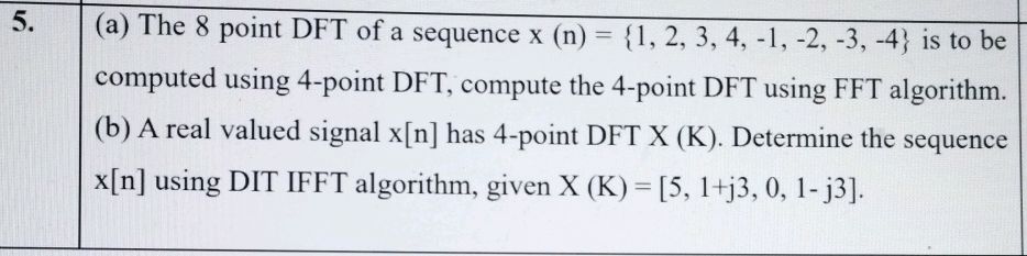 Q5b Use the 8-point radix-2 DIT FFT algorithm to find the DFT of the ...