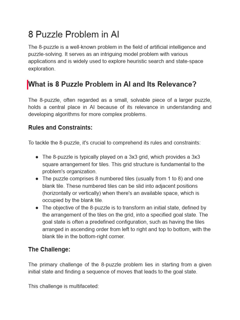 8 Puzzle Problem in AI | PDF | Artificial Intelligence | Intelligence ...