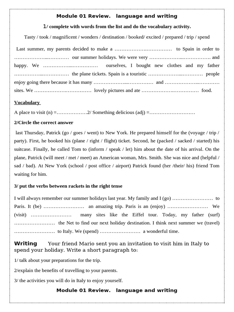 Year 4: Module 8 Writing Worksheet for ESL Students