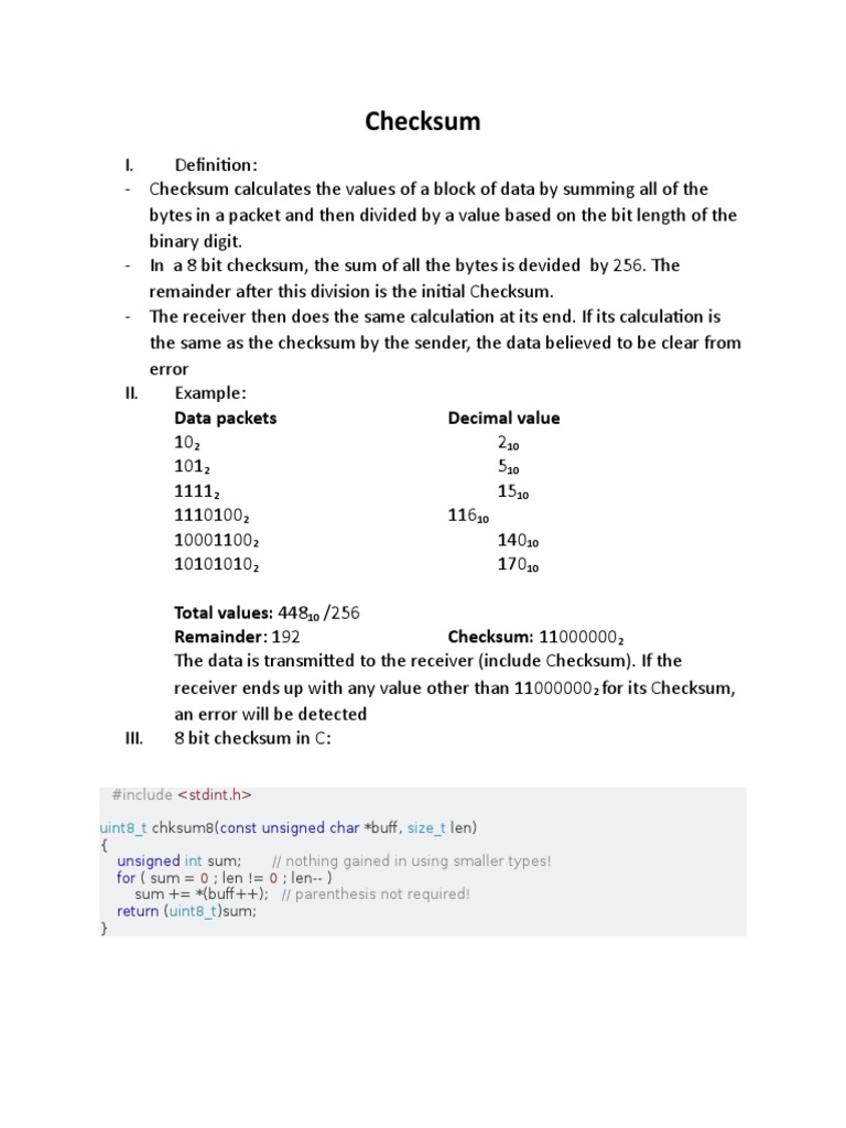 Solved What is the checksum for a message made of 8-bit | Chegg.com