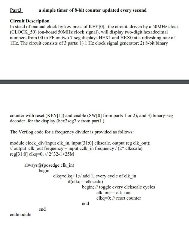 Solved Part3 a simple timer of 8-bit counter updated every | Chegg.com