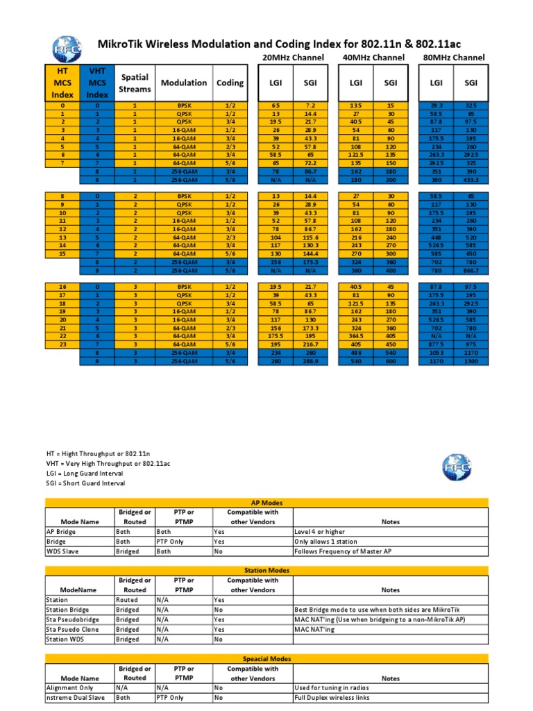 Mikrotik Wireless Modulation and Coding Index For 802.11N & 802.11ac ...