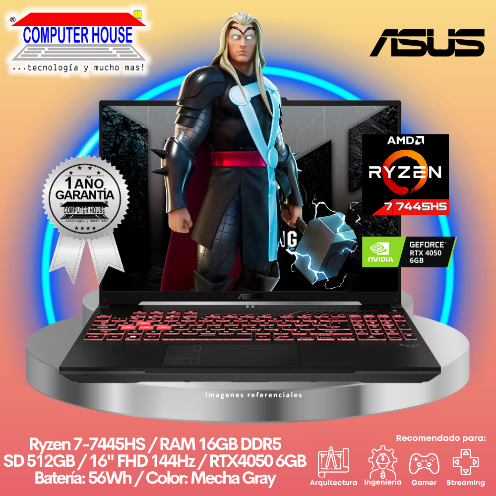Laptop ASUS Tuf Gaming A16, Ryzen 7-7445HS, RAM 16GB DDR5, SSD 512GB ...
