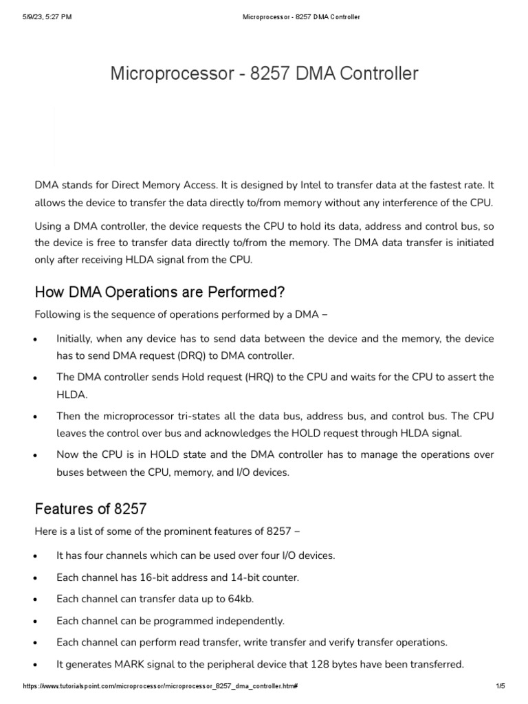 Intel 8257 DMA Controller Overview | PDF | Input/Output | Digital ...