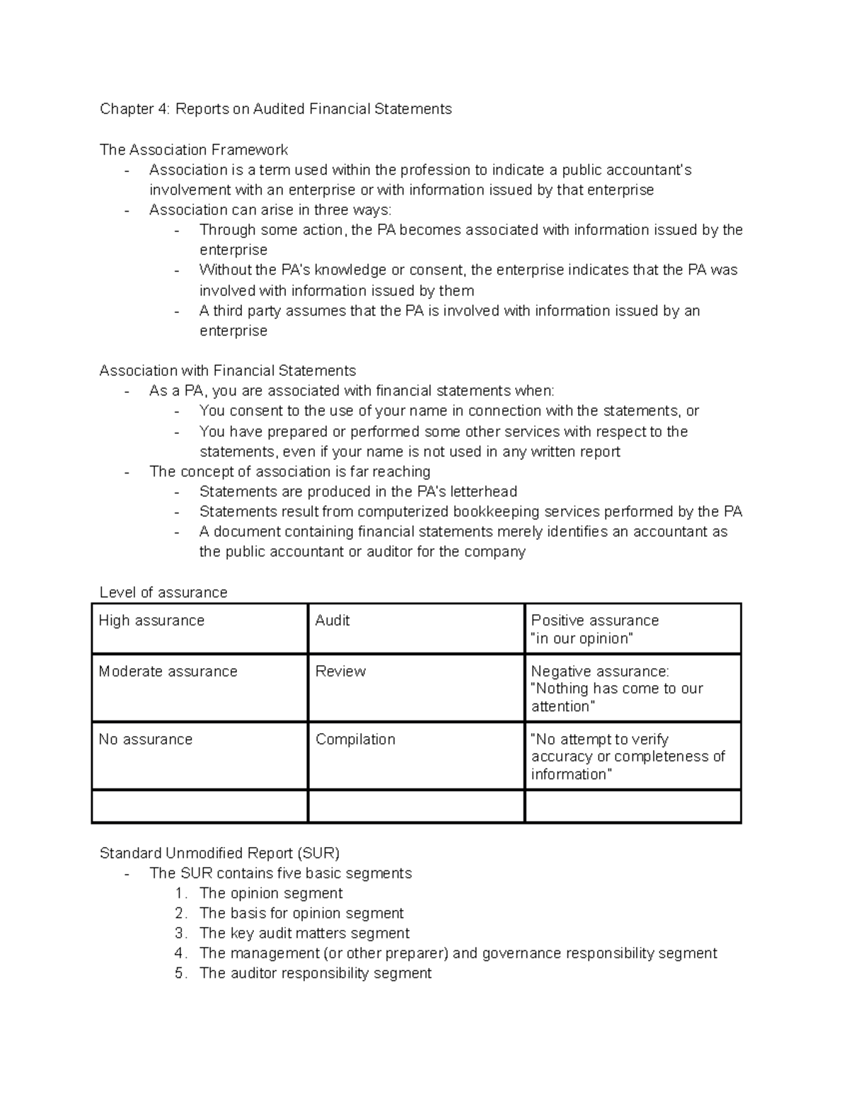 Audit notes - September 7, 2023 Chapter 4 The Essentials of Reports on ...