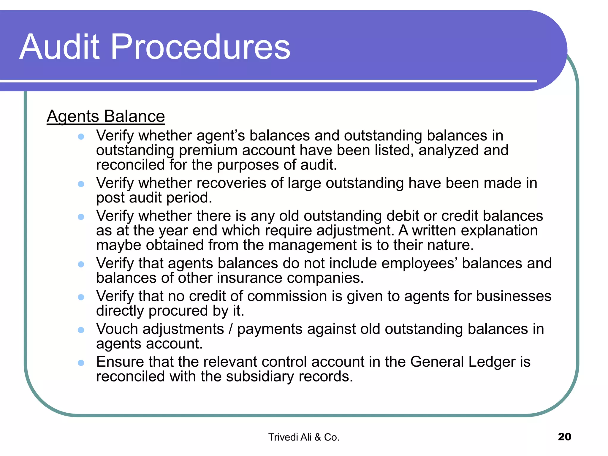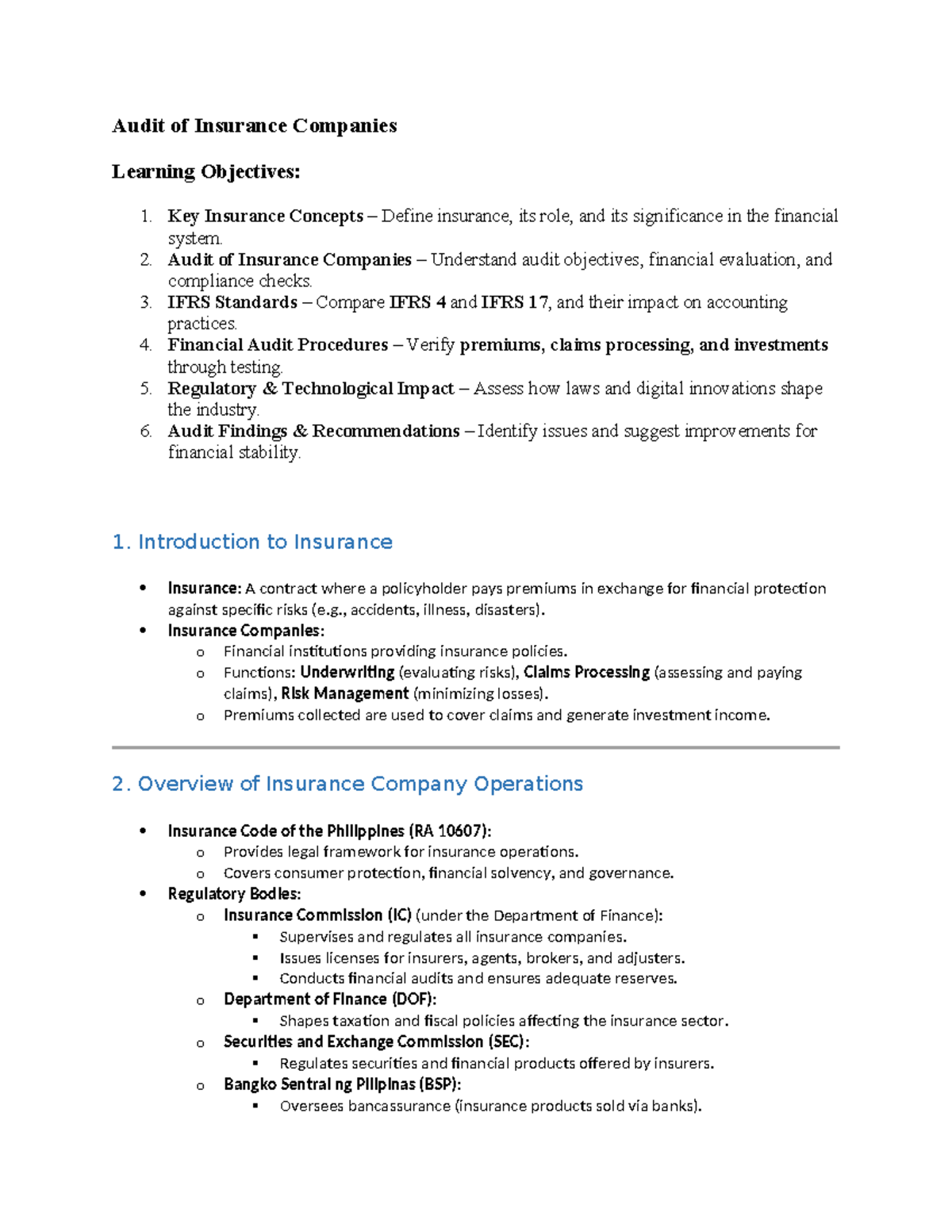 Summary of Audit Procedures for Insurance Companies (ACCT101) - Studocu
