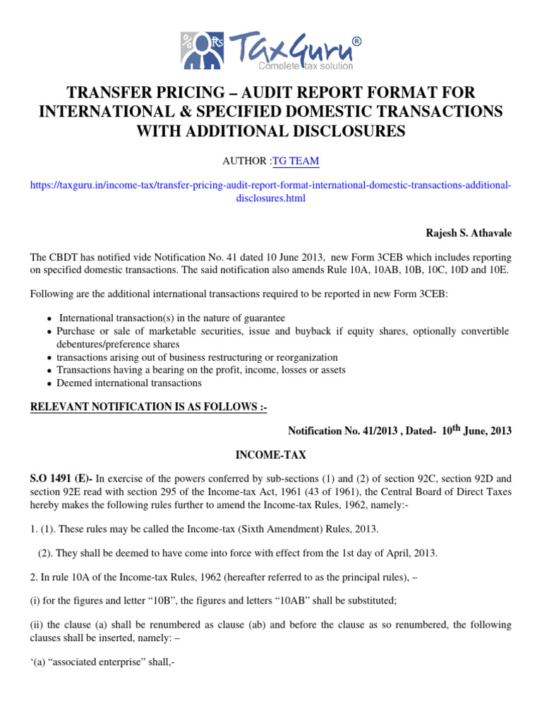 Transfer Pricing – Audit Report Format For International & Specified ...