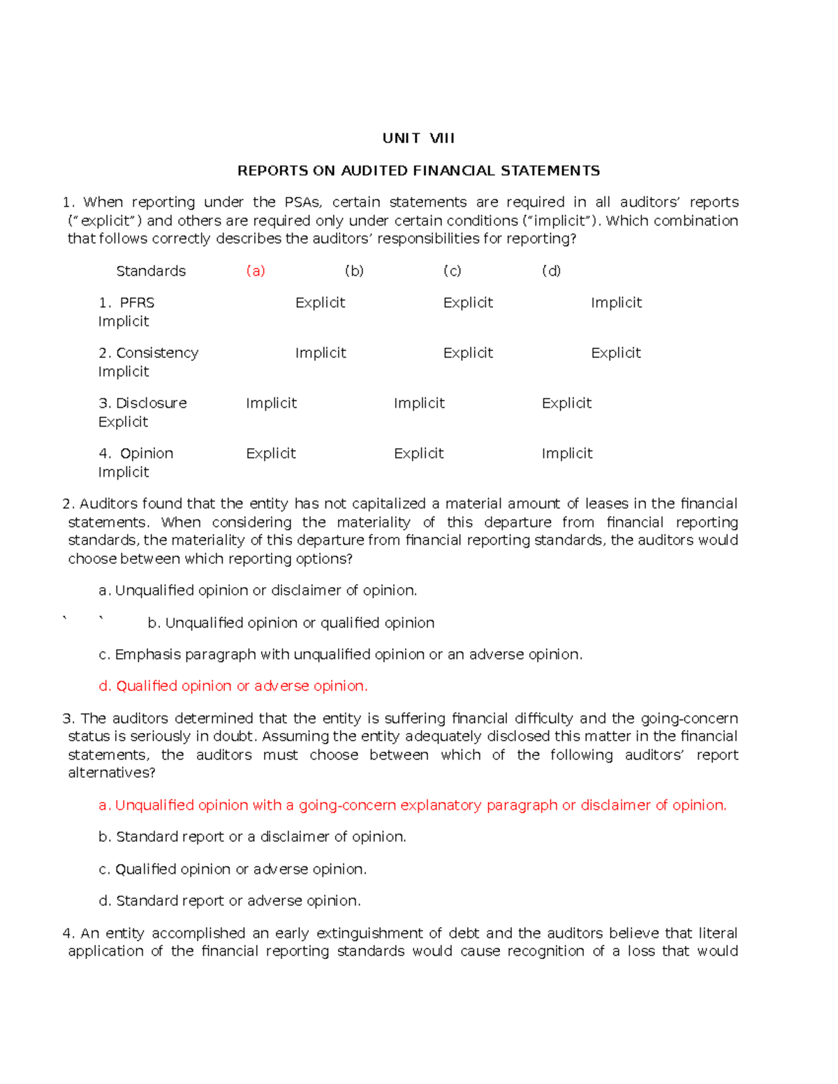 Unit 8 - Understanding Auditors' Reports on Financial Statements - Studocu