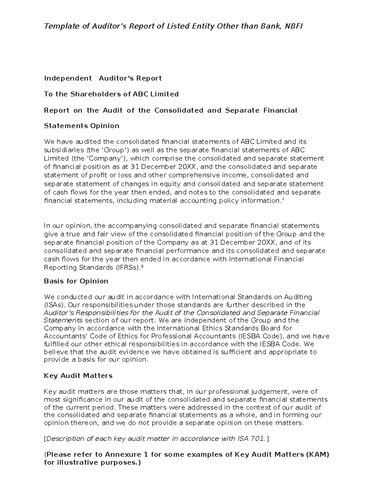 Template of Auditor's Report for Listed Entities (Non-Bank, NBFI ...