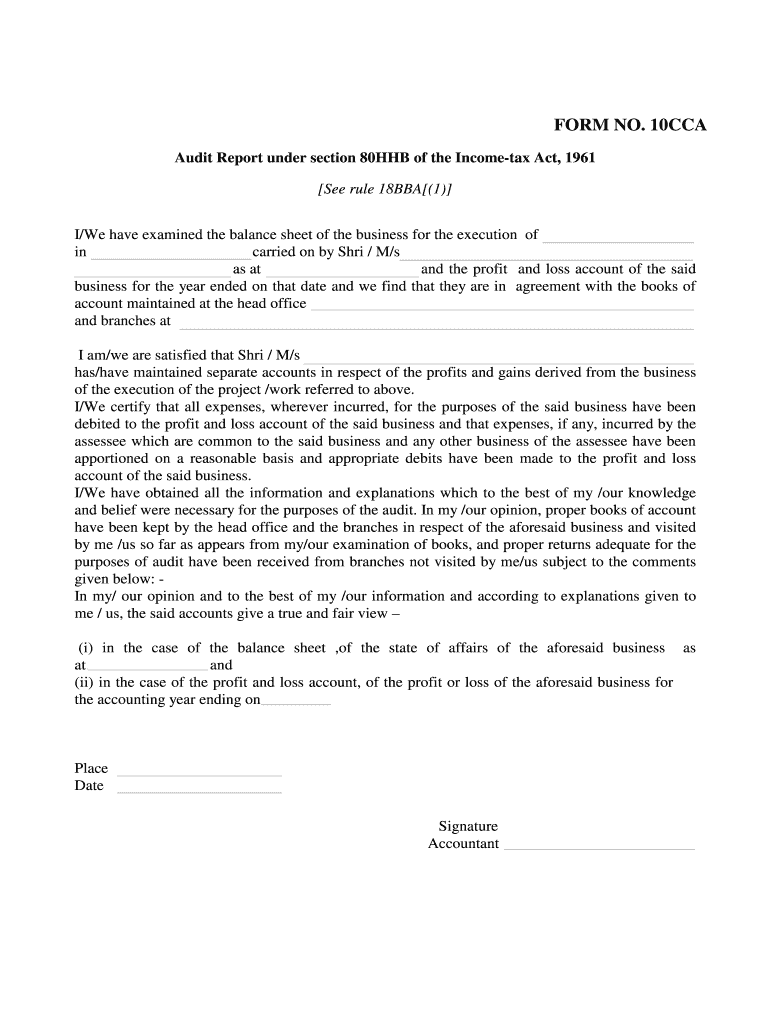 Fillable Online Audit Report under section 80HHB of the Income-tax Act ...