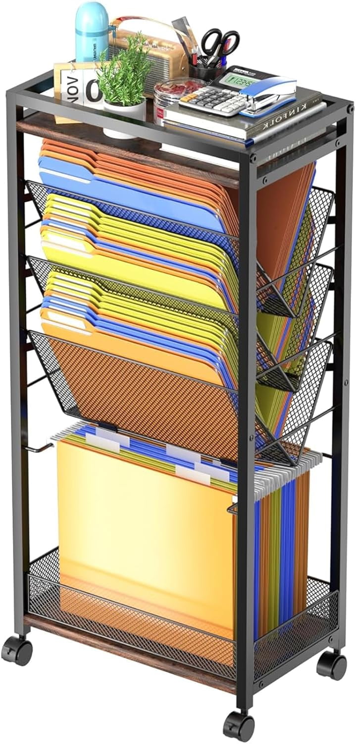 8 Tier Rolling File Cart with Wheels, Office Desk File Organizer Cart ...