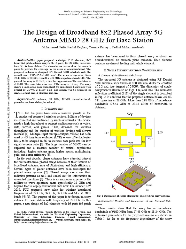 The Design of Broadband 8x2 Phased Array 5G Antenna MIMO 28 GHZ For ...