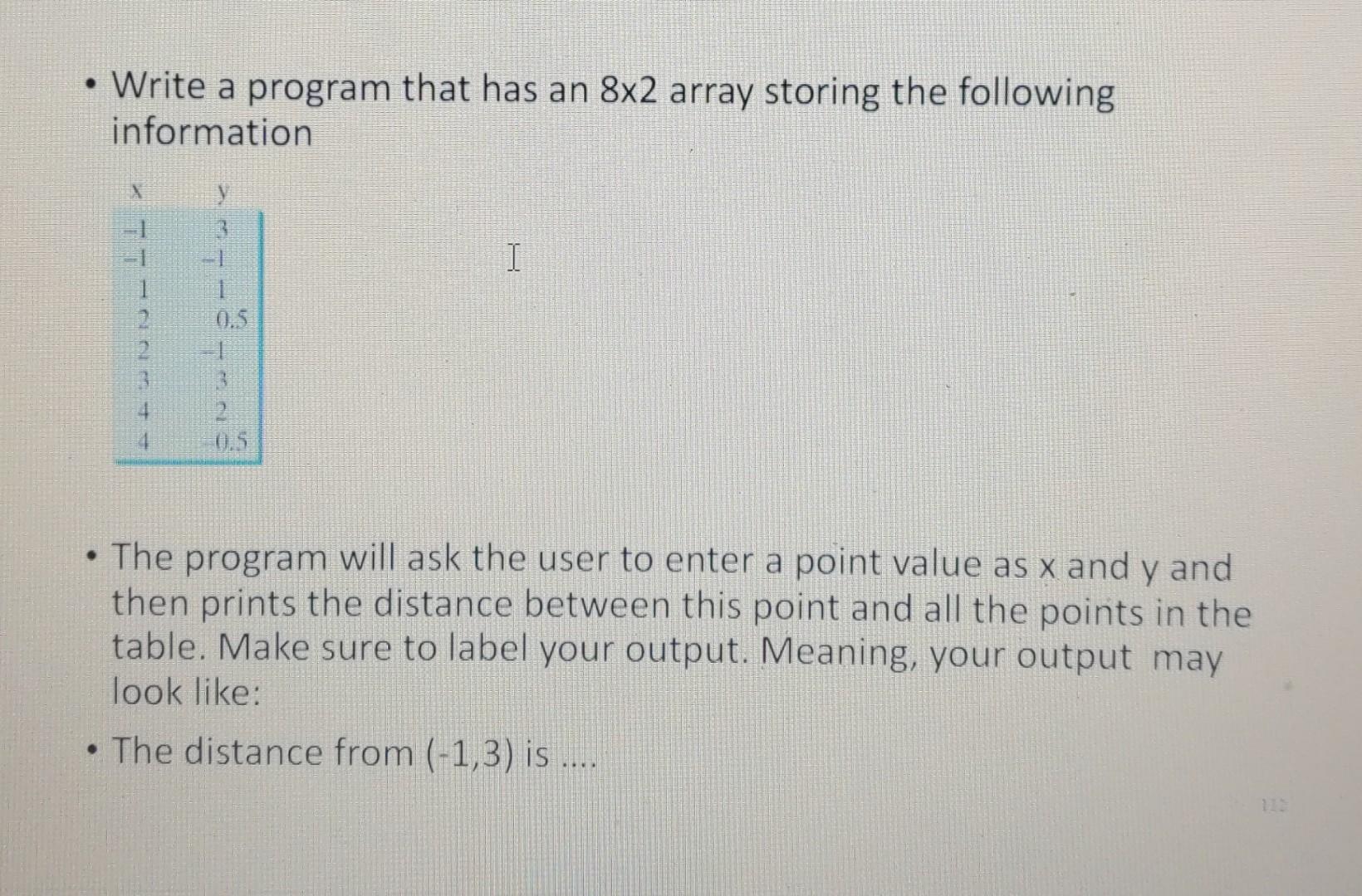 Solved • Write a program that has an 8x2 array storing the | Chegg.com