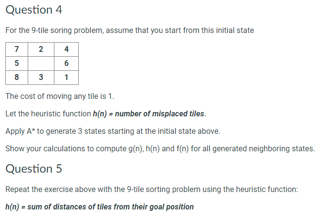 Solved For the 9-tile soring problem, assume that you start | Chegg.com