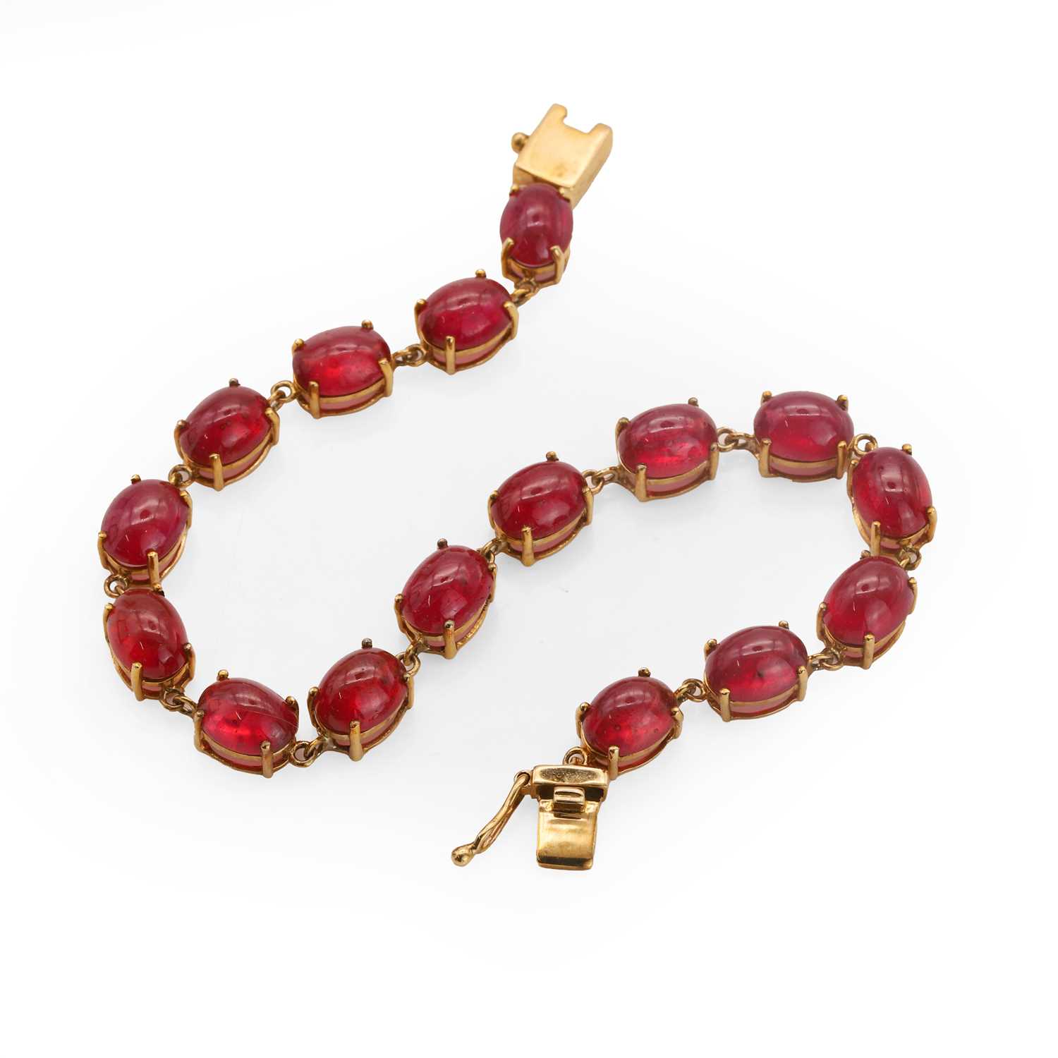 Lot 99 - A 9ct gold ruby line bracelet,
