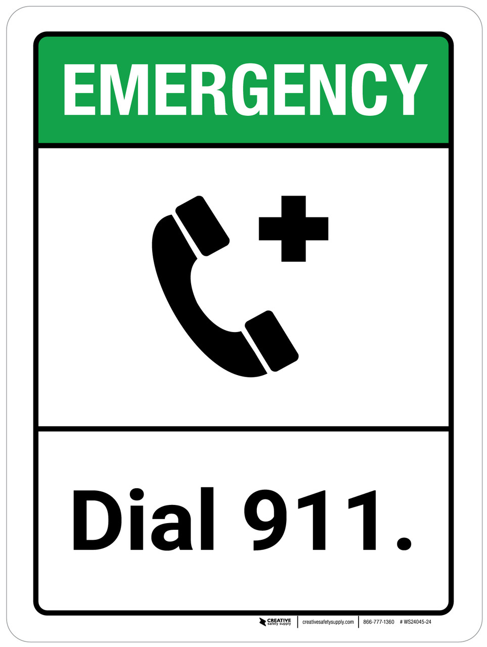 Emergency: Dial 911 ANSI Portrait - Wall Sign