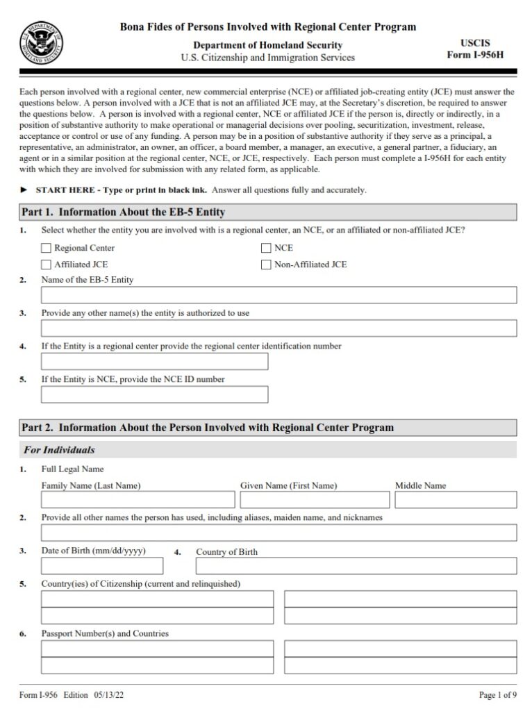 I-956H Form – Bona Fides of Persons Involved with Regional Center ...