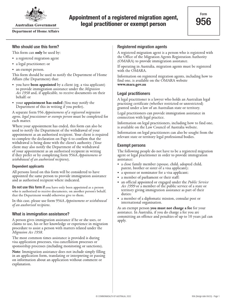 Fill Out Form 956 - Appoint a Migration Lawyer | Zendocs