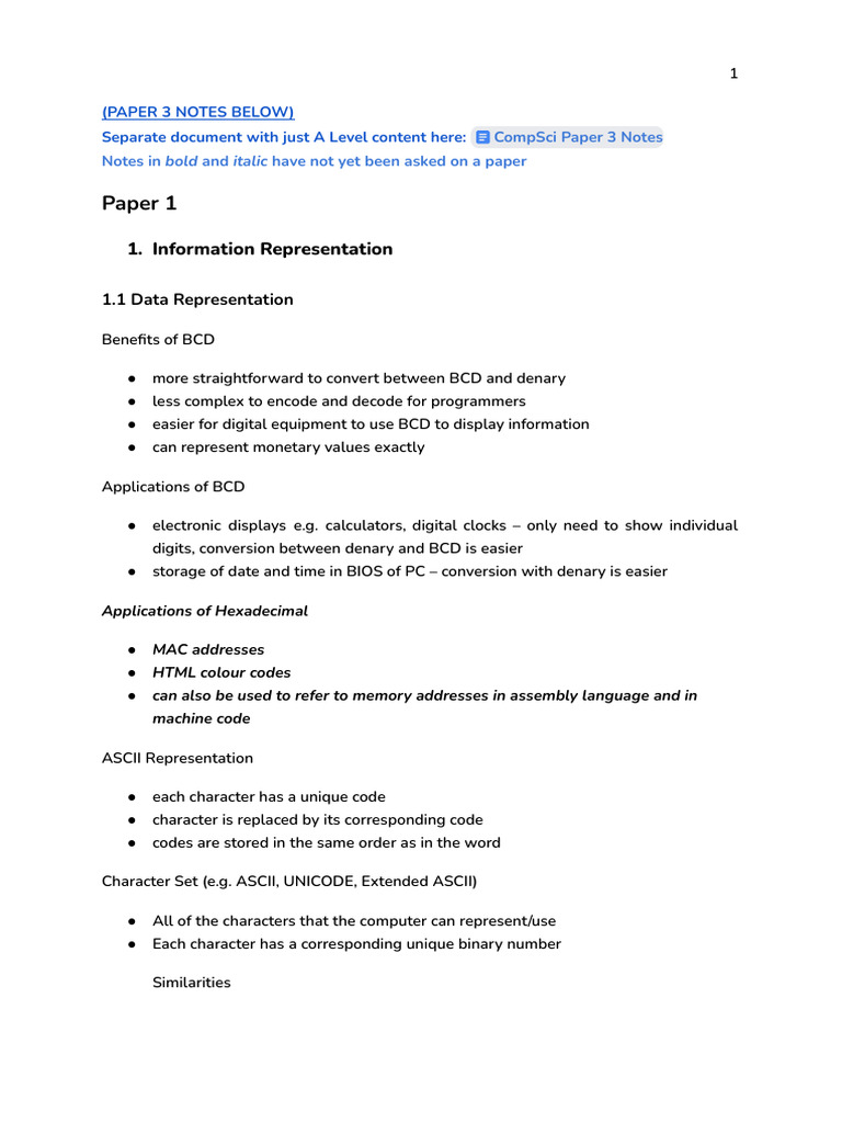 DATA REPRESENTATION IN COMPUTER SCIENCE 9618 PAPER 1 NOTES - Studocu