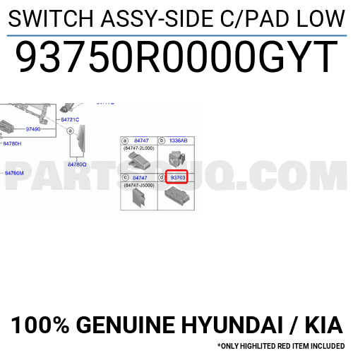 SWITCH ASSY-SIDE C/PAD LOW 93750R0000GYT | Hyundai / KIA Parts | PartSouq
