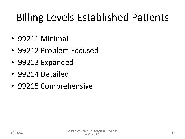 Descriptions and Classification for Visit CPT Codes 99212-99215 ...
