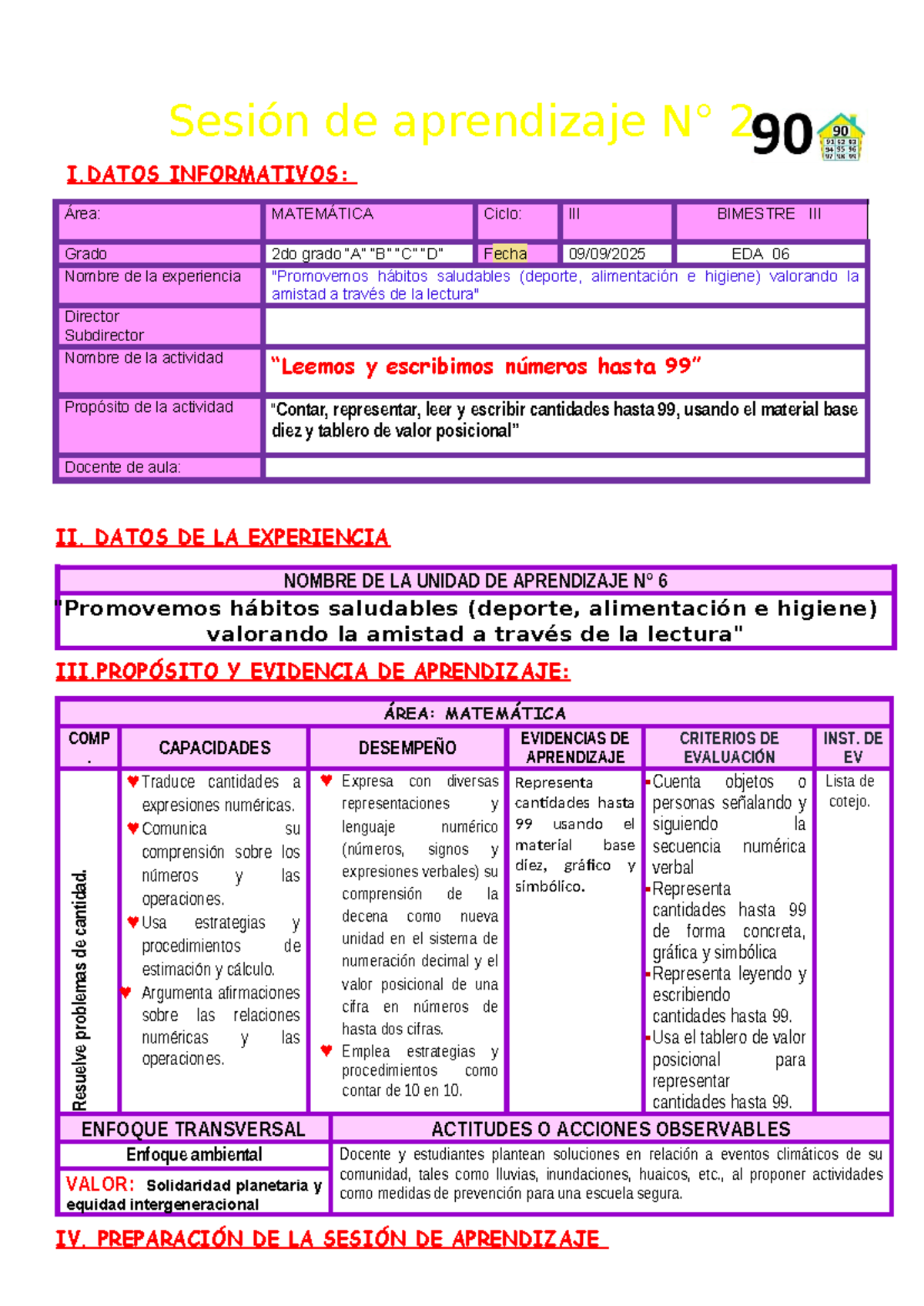 09-09 MAT. Sesión de Aprendizaje: Lectura y Escritura de Números Hasta ...