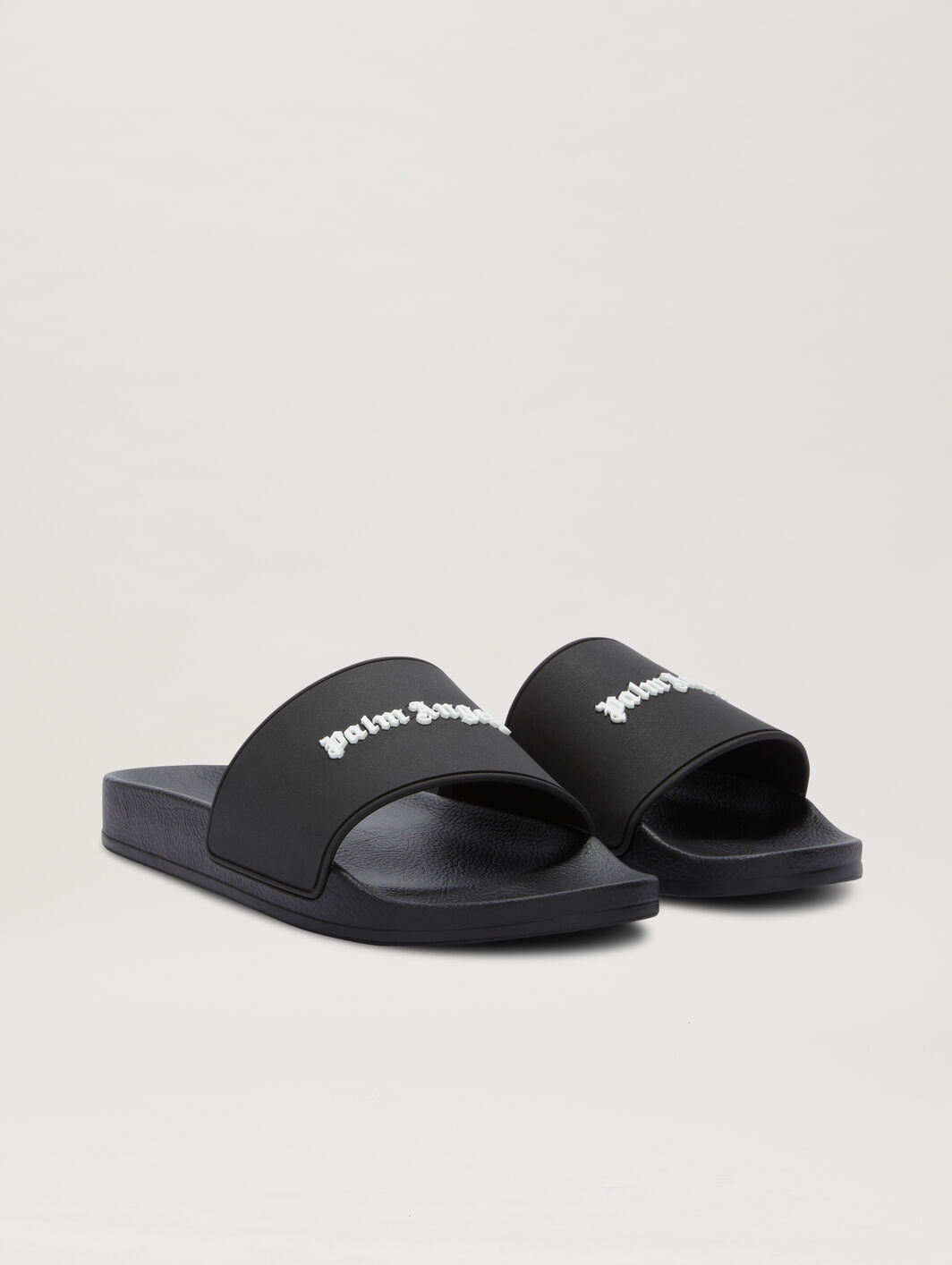 Classic Logo Pool Slider in BLACK WHITE for Men | Palm Angels®