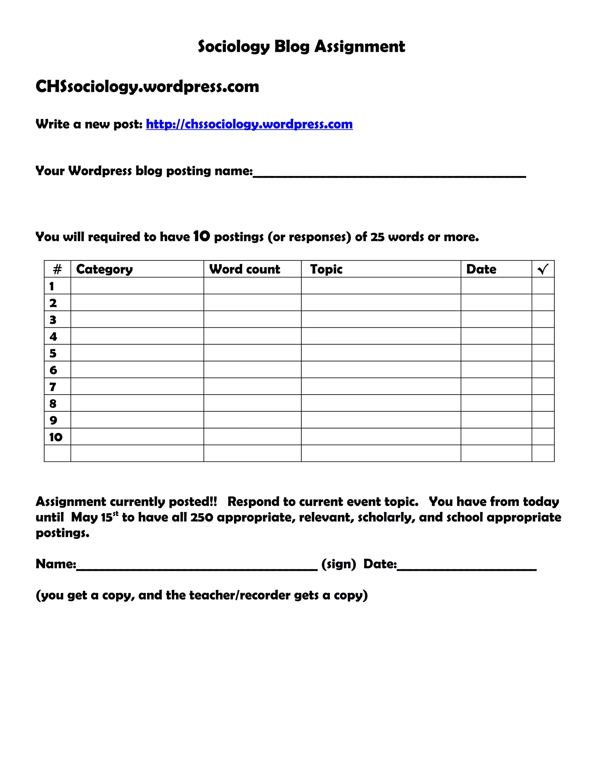 Blog Assignment Instructions.docx - Blog Assignment Instructions DUE ...