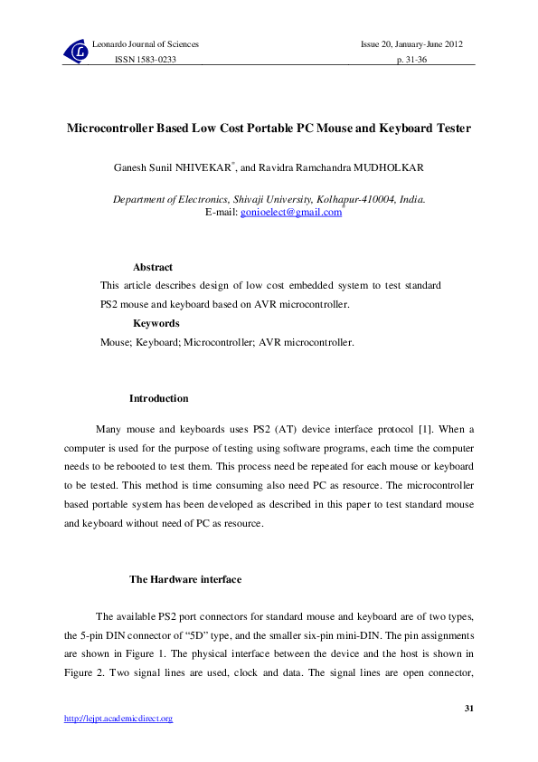 (PDF) Microcontroller Based Low Cost Portable PC Mouse and Keyboard Tester